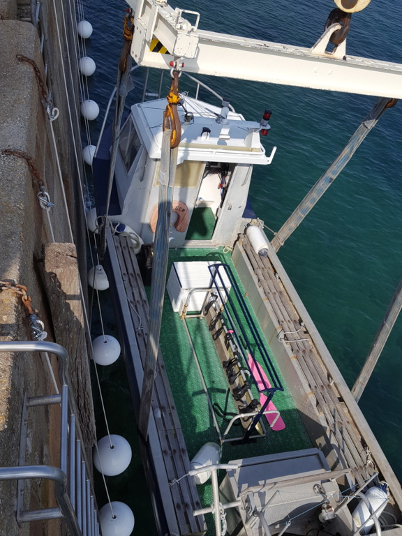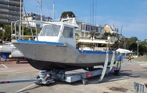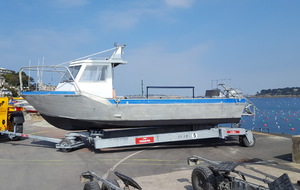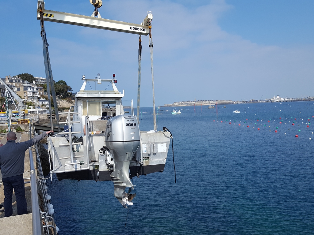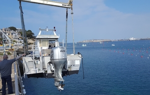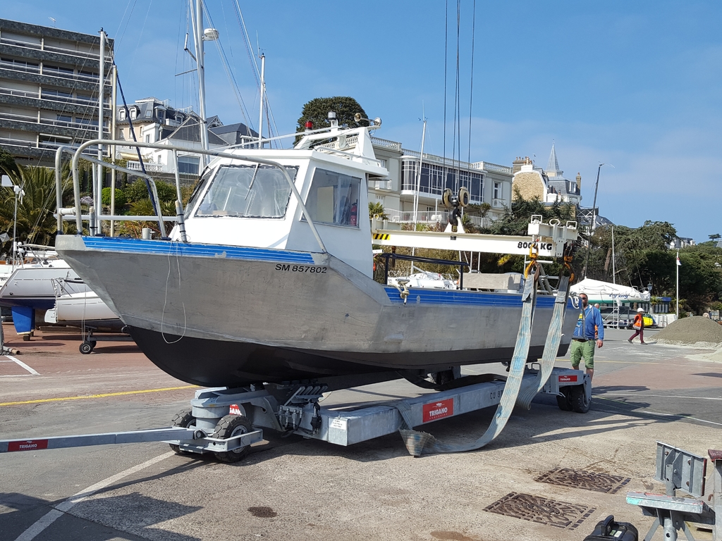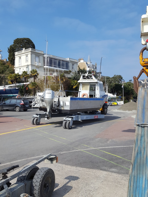 La mise à l'eau s'est effectuée le 28 mars à 14h45 au Port de Dinard. Yannick et Michel ont ramené le bateau à son moulillage du Port des Bas Sablons.