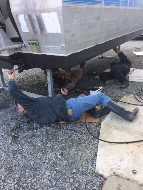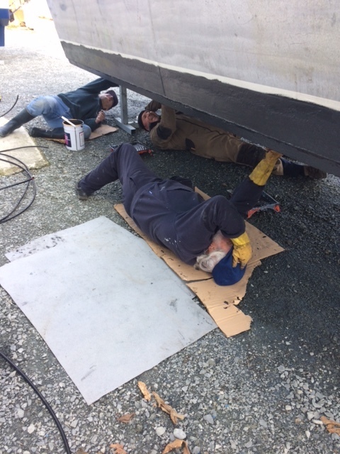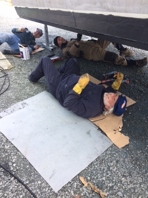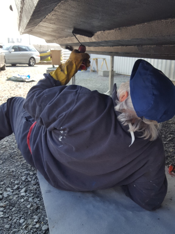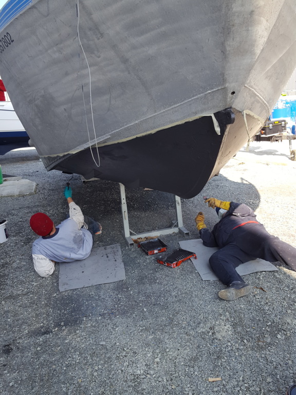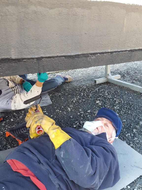 Le 20 mars une première couche d'anti fooling a été mise sur la coque du bateau FELGER II par Jean Michel, Michel, Amand et Bernard