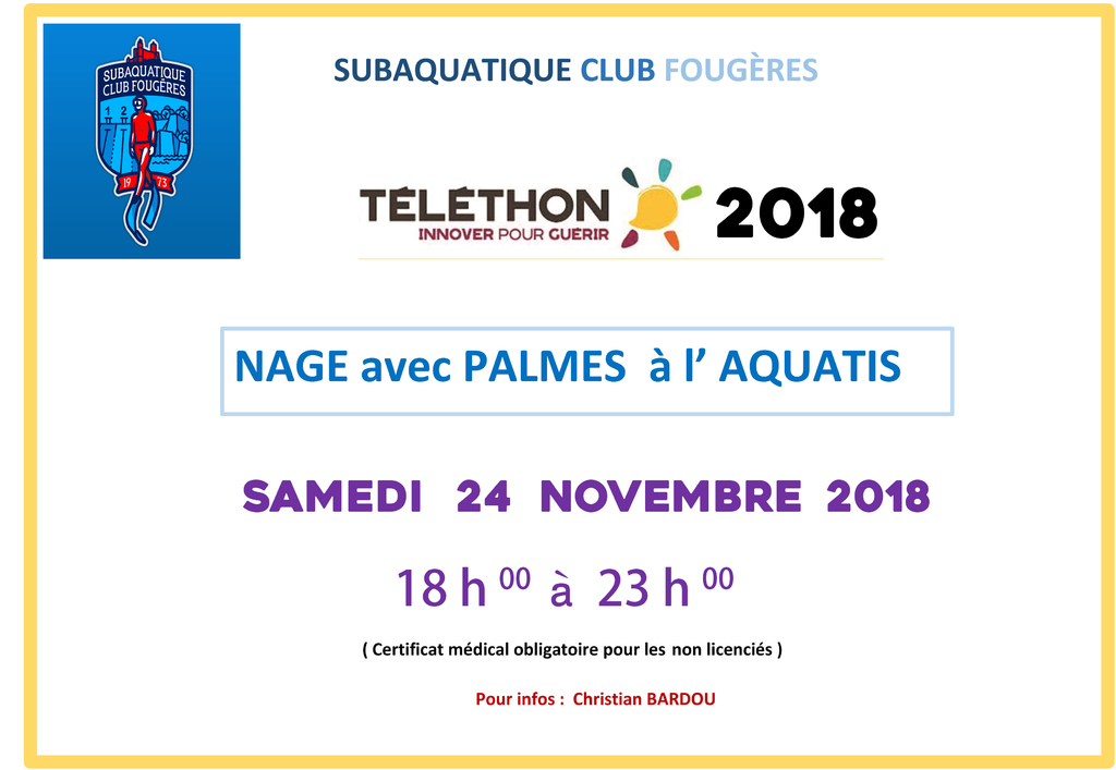 VENEZ POUR UNE NAGE AVEC PALMES POUR SOUTENIR LE TELETHON.