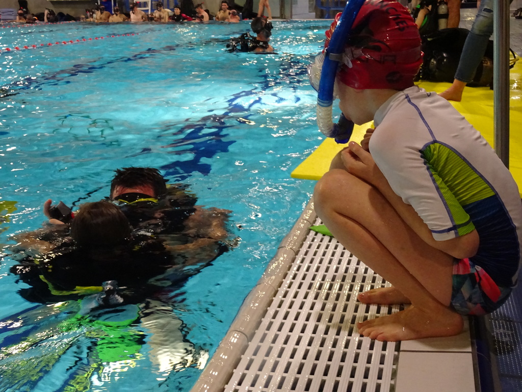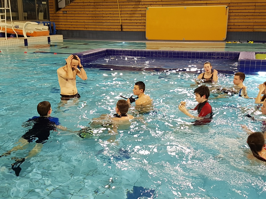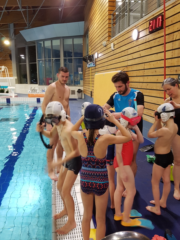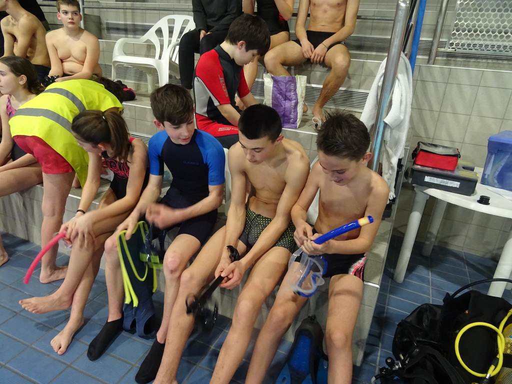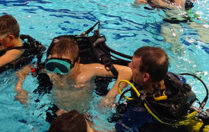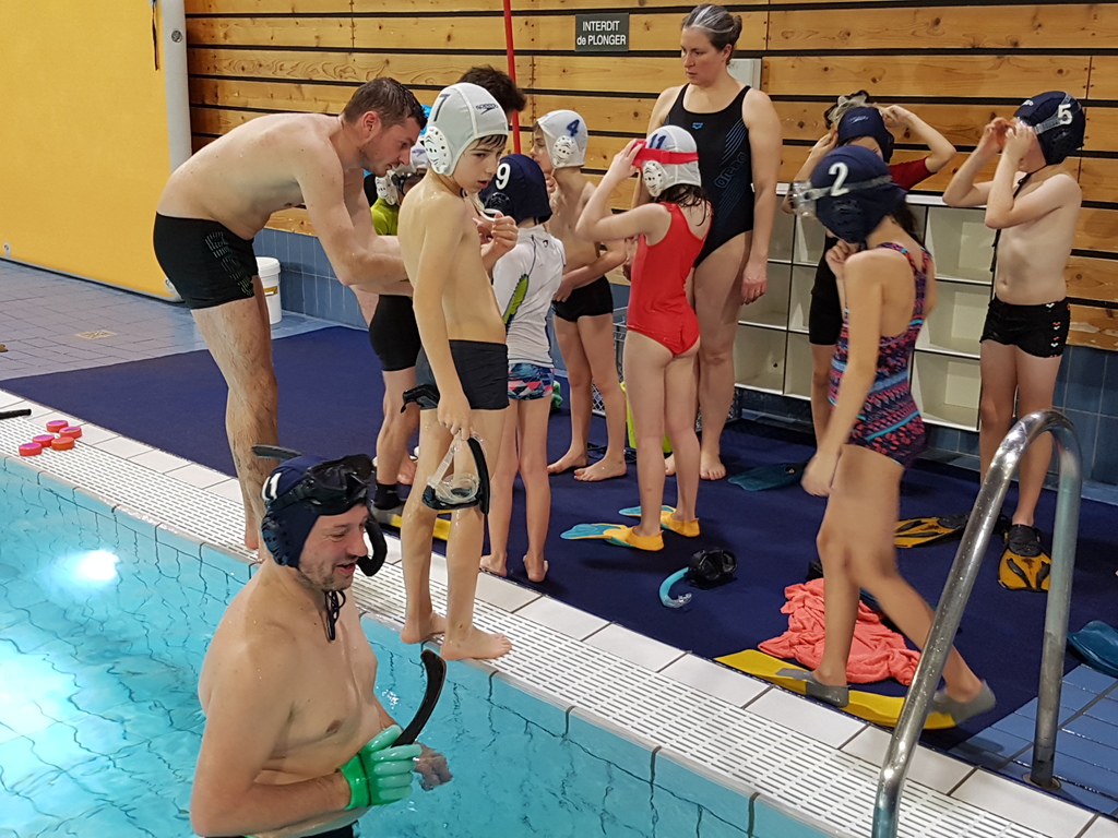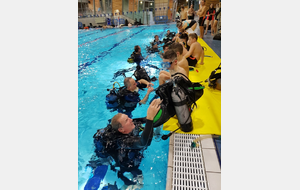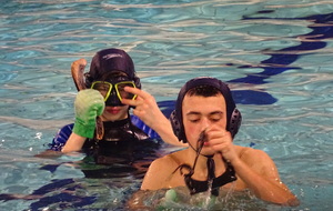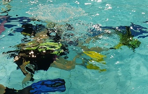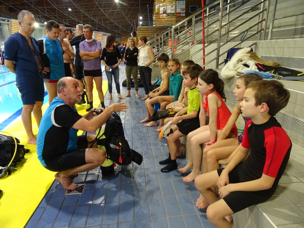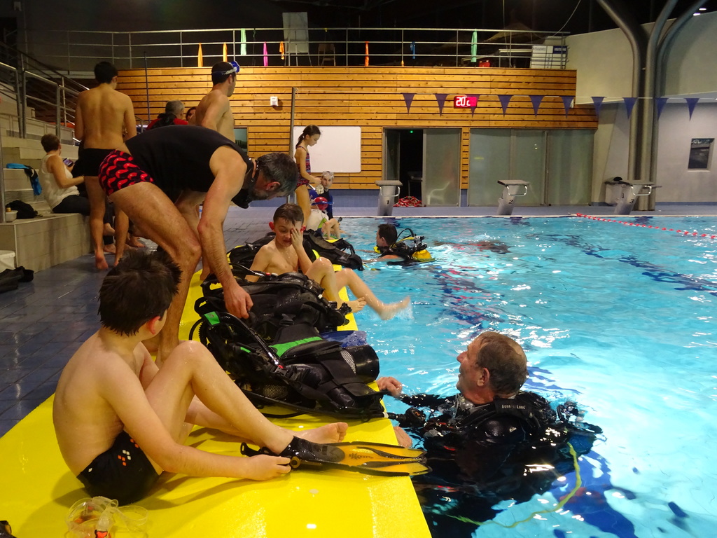Une trentaine d'enfants ont découvert les activités subaquatiques de leurs parents en pratiquant succèssivement la plongée scaphandre, l'apnée et le hockey subaquatique.