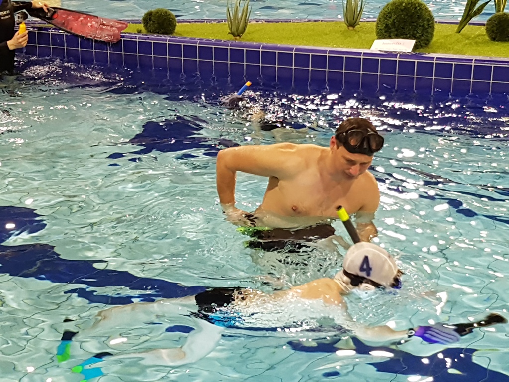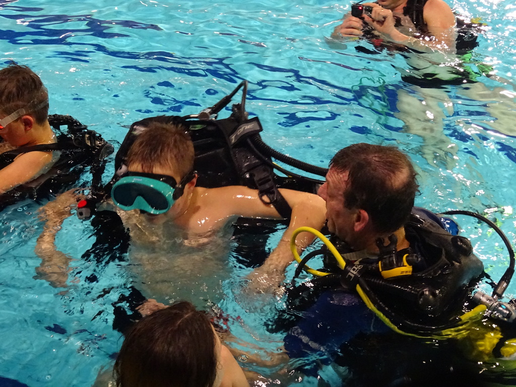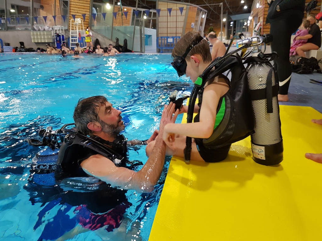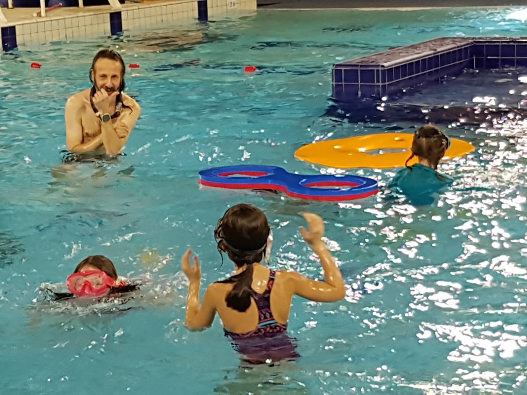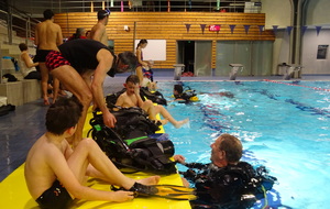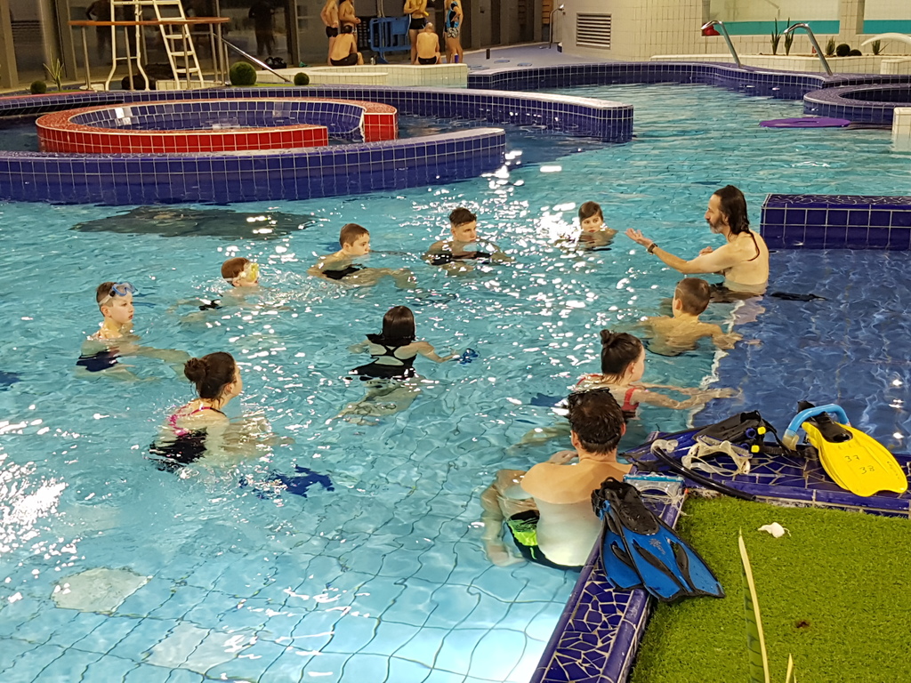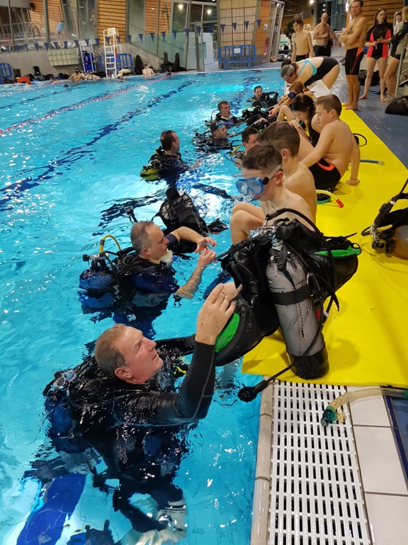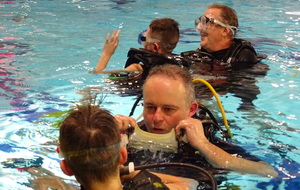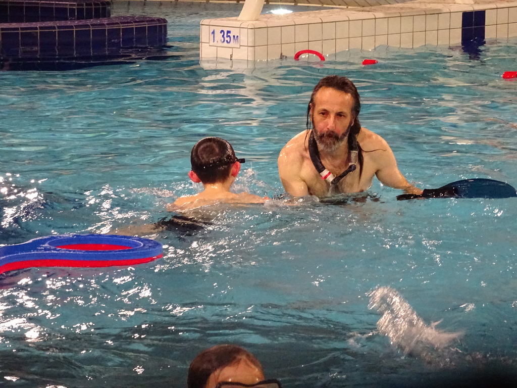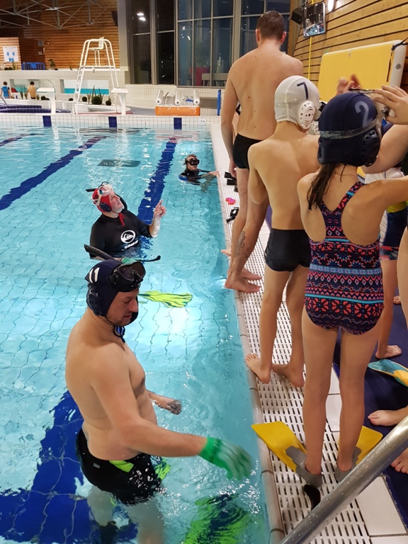 Une trentaine d'enfants ont découvert les activités subaquatiques de leurs parents en pratiquant succèssivement la plongée scaphandre, l'apnée et le hockey subaquatique.