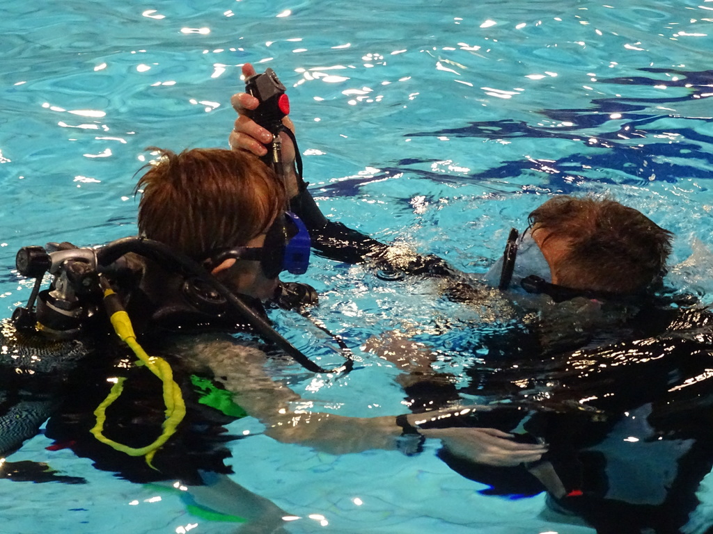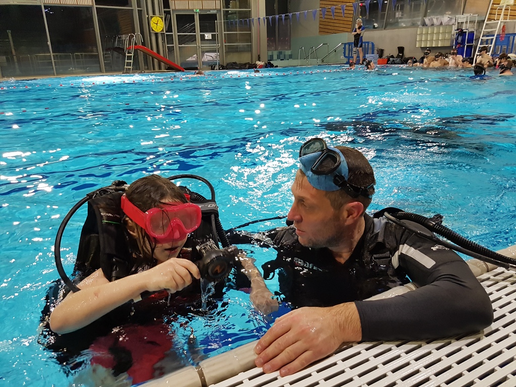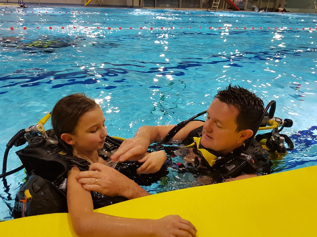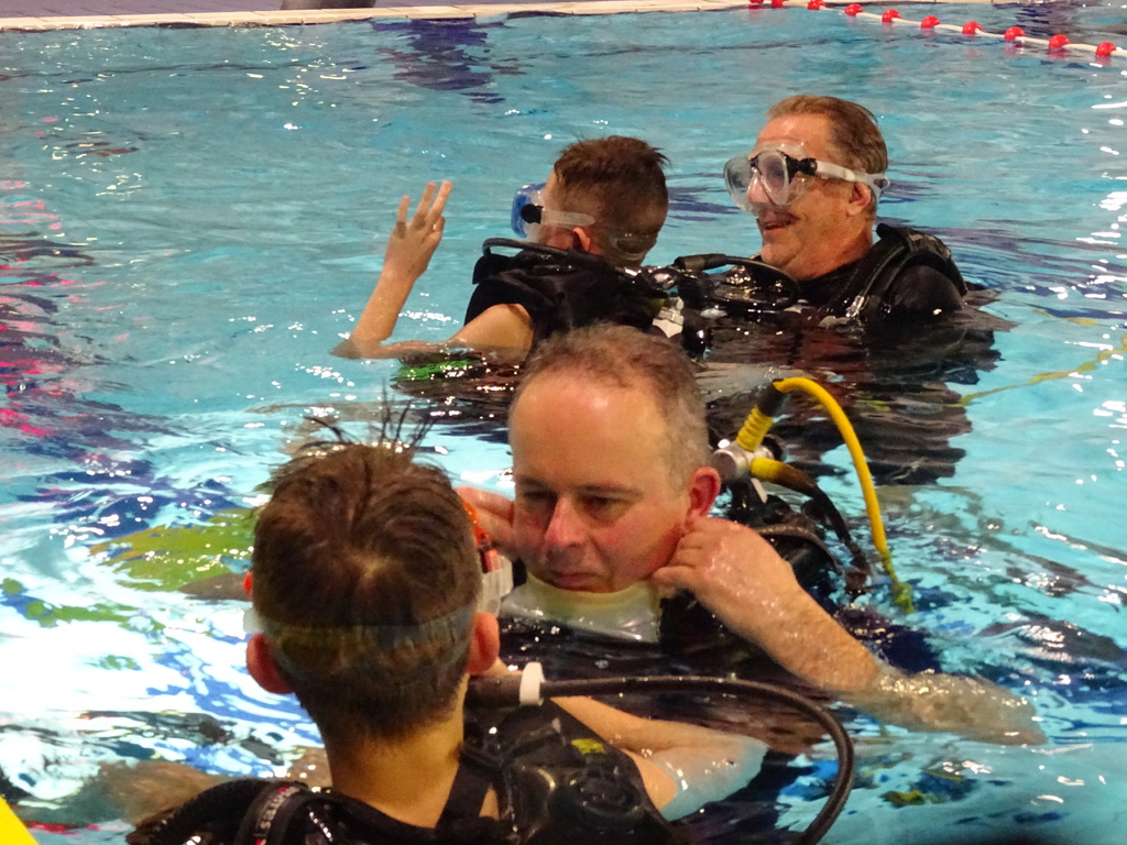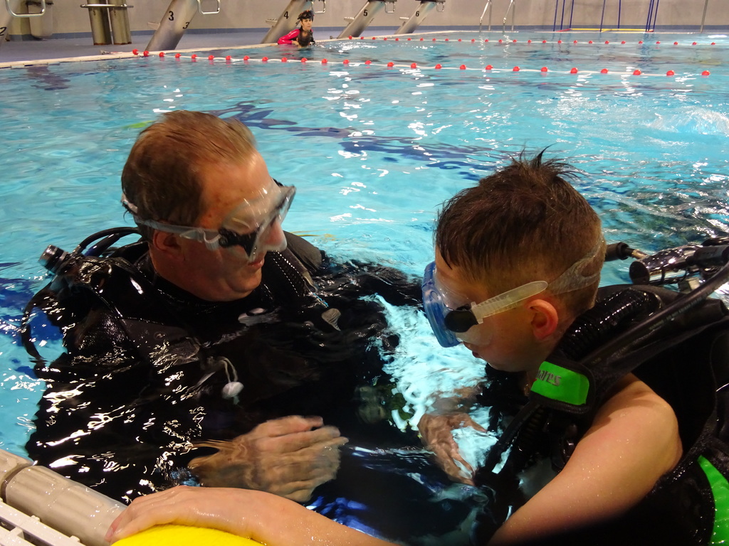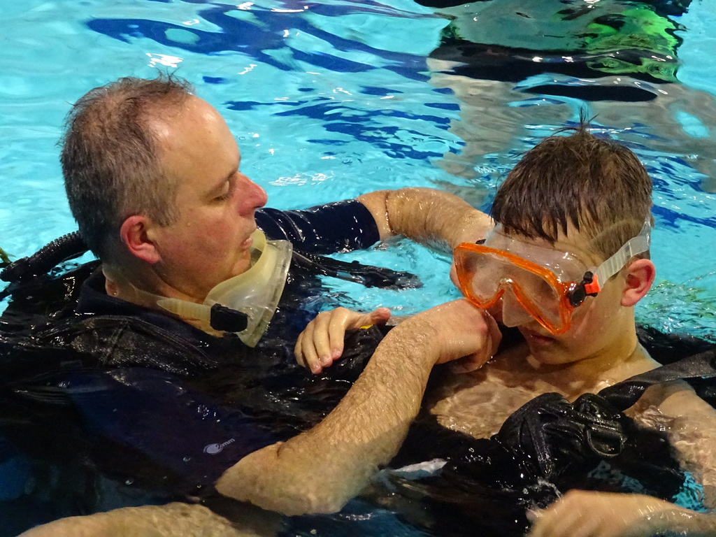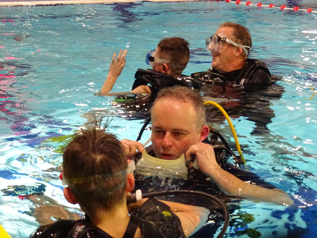 Une trentaine d'enfants ont découvert les activités subaquatiques de leurs parents en pratiquant succèssivement la plongée scaphandre, l'apnée et le hockey subaquatique.