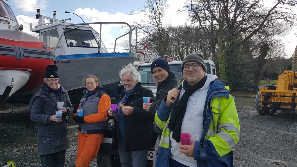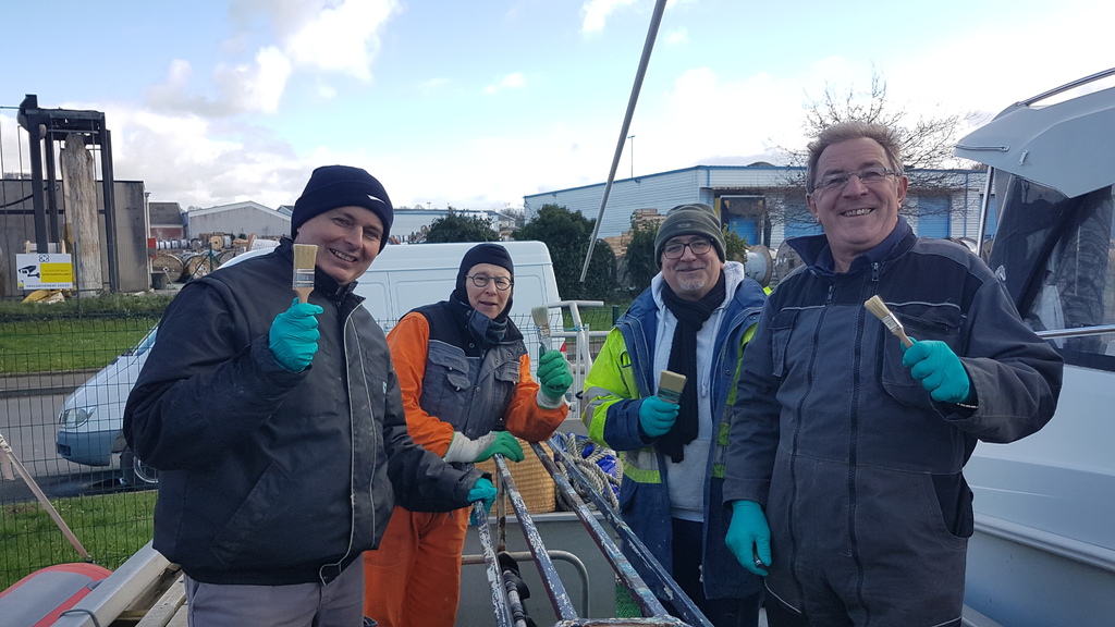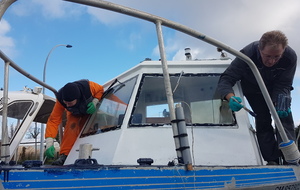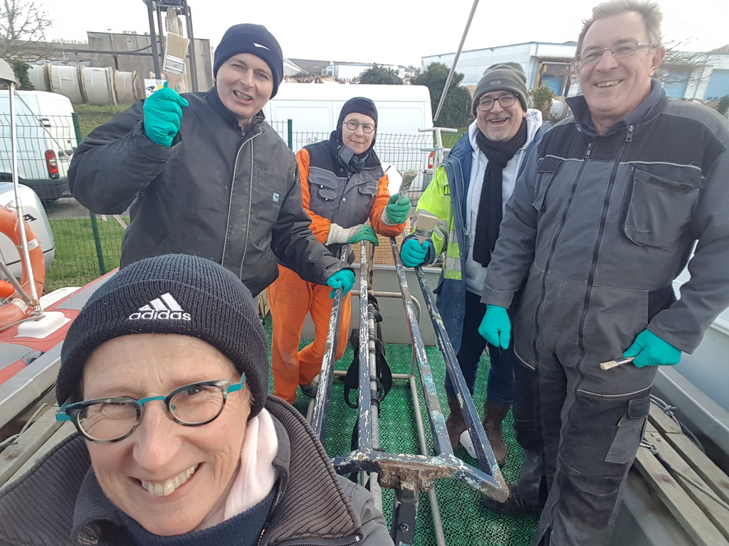 Une équipe motivée s'est déplacée à Dinard le 27 février sous un soleil radieux pour assurer une première phase d'entretien du bateau du Club.