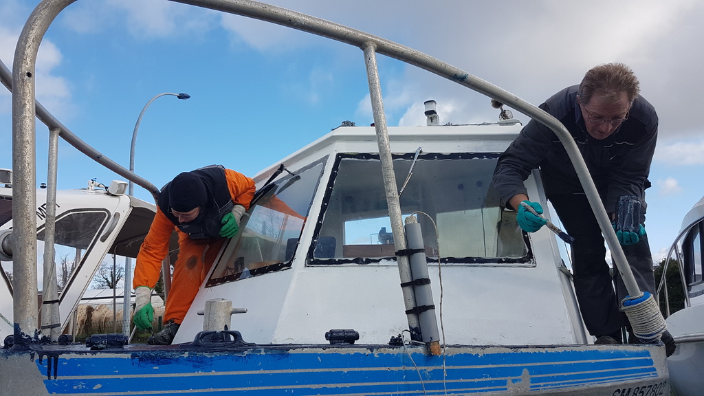Une deuxième équipe a assuré la première couche d'antifooling le 12 mars.