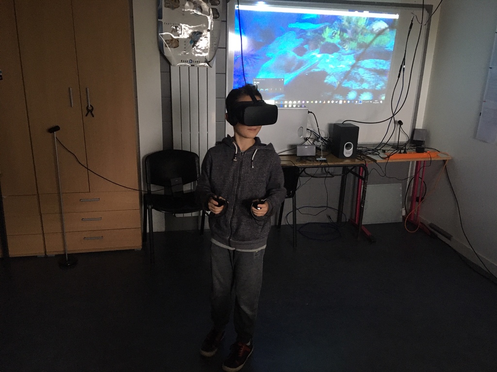 Samedi 21 décembre, à 9h30 les enfants arrivent au nombre de 10, accompagnés de deux papas curieux à qui nous proposons l'expérience de la VR après les enfants.