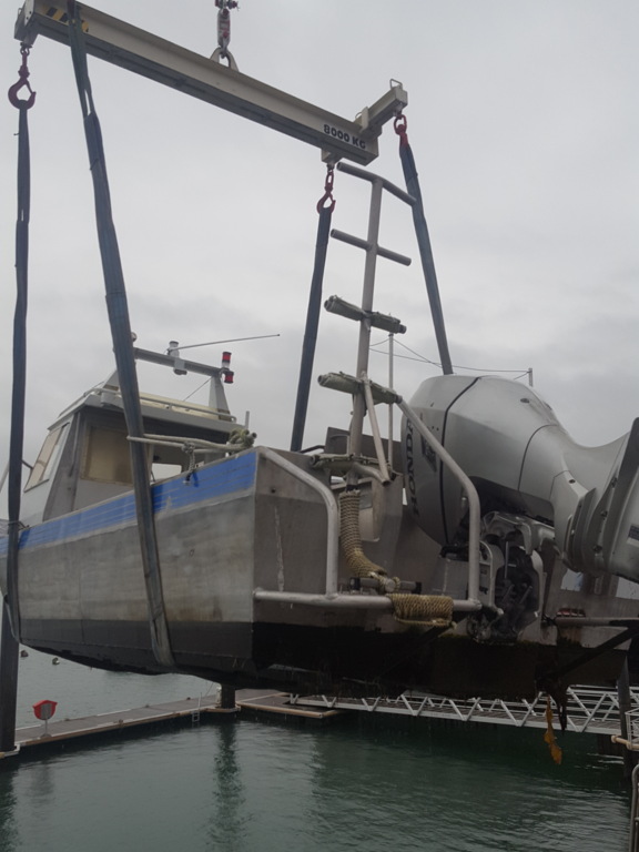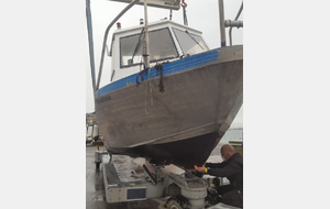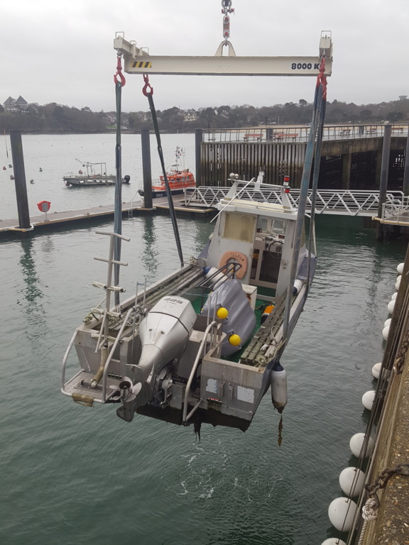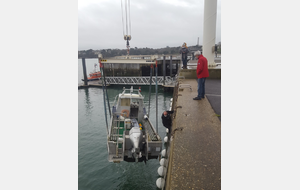 Ce mardi 22 décembre une équipe motivée a rejoint, très tôt, le port des Bas Sablons pour de convoyer le bateau du Club "FELGER II" vers Dinard. Le bateau est pris en charge par le chantier RM Marine pour les opérations annuelles d'entretien.