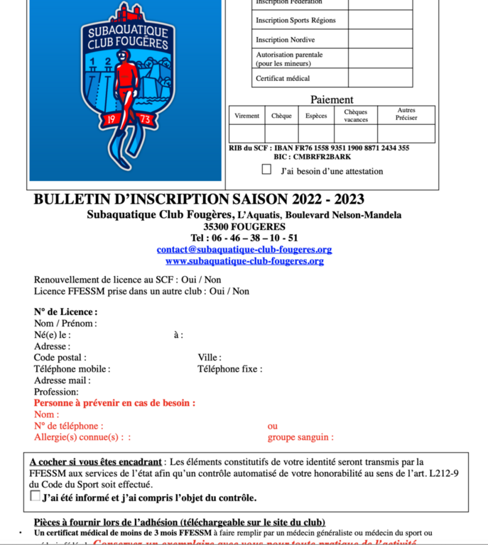 Le bulletin d'inscription 2022-2023 est d'ors et déjà disponible sur le site.