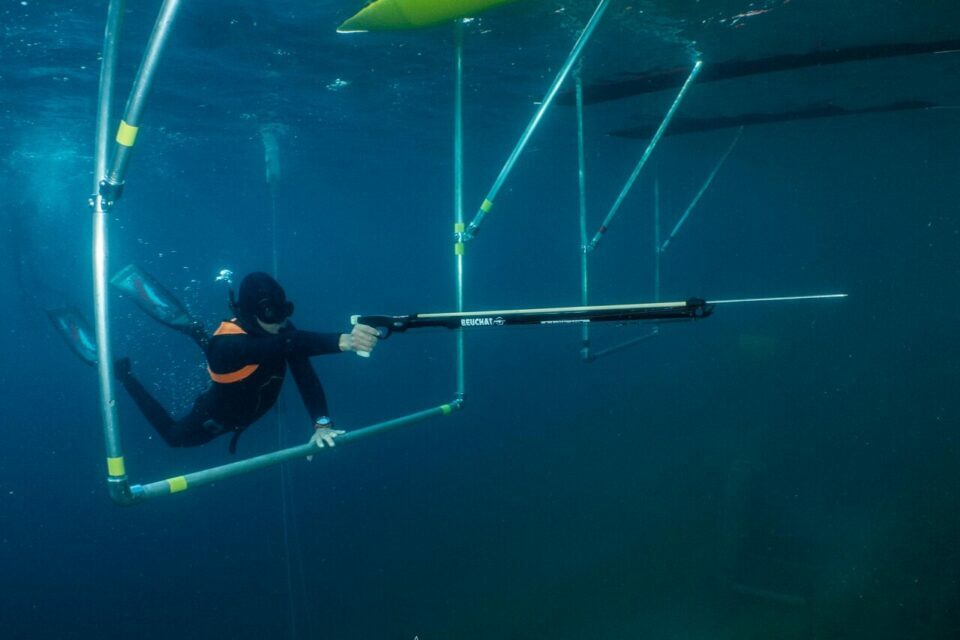 Par équipe de trois, chaque participant devra faire six parcours de 75 m de nage en surface entrecoupés d’un tir en apnée (cinq au total) et une épreuve en relais avec trois parcours chacun et trois tirs.